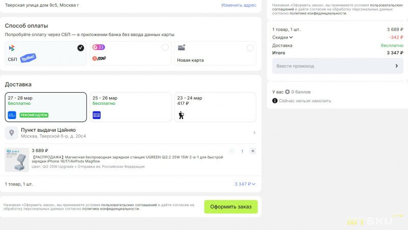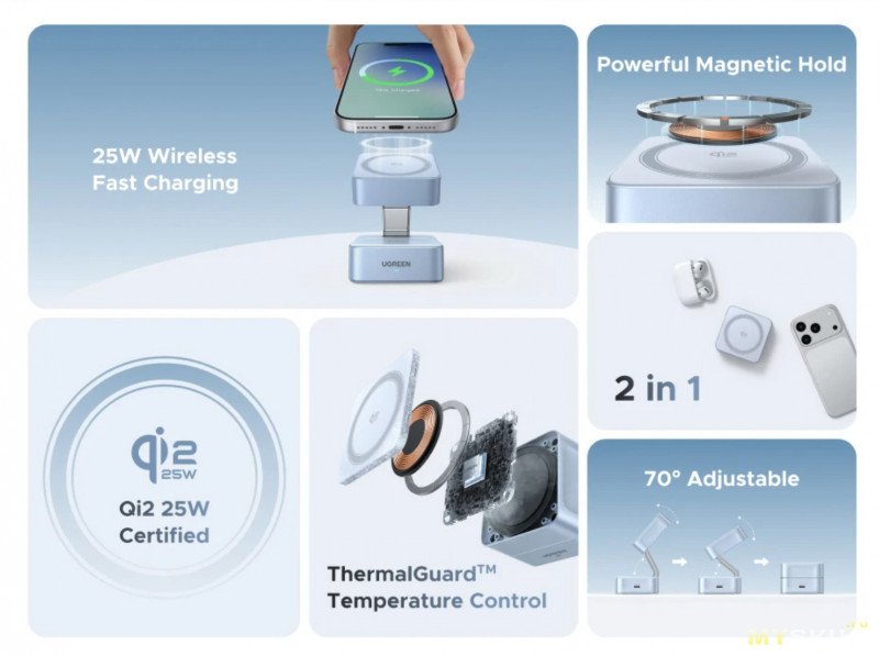 Магнитная беспроводная зарядная станция UGREEN Qi2.2 25W за 3347 руб.
