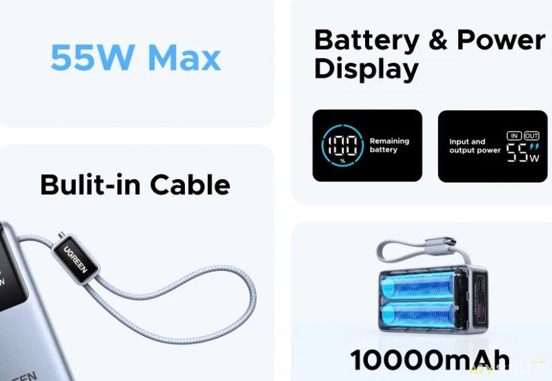 29.16$ - 33.21 Павер банк UGREEN 55W Power Bank 10000mAh