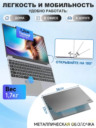 Так же есть две встроенные колонки и камера на 1МР. Экран раскрывается на 180⁰ и может фиксироваться в разных положениях. Корпус сделан из алюминия, и весит Ninkear A15 Plus 1,6 кг. Толщина составляет 22 мм.