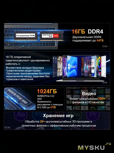 - ROM: SSD на 1TБ PCIe, слот M.2 2280 SSD, PCIe 3.0 x4