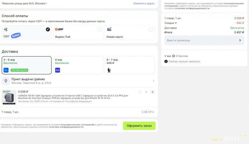 Зарядное устройство UGREEN 100 Вт за 2457 руб.