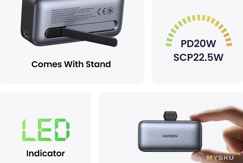 14.3$ Скидка на компактный павер банк UGREEN 5000 мАч 22,5 Вт