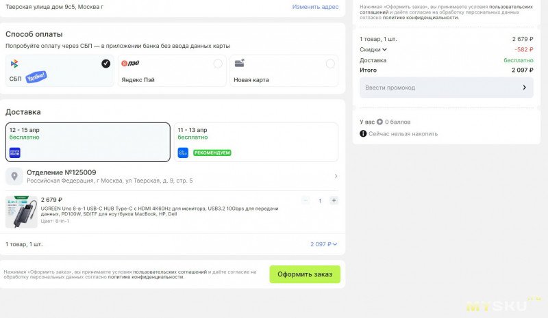 Хаб UGREEN Uno 8-в-1 за 2097 руб.
