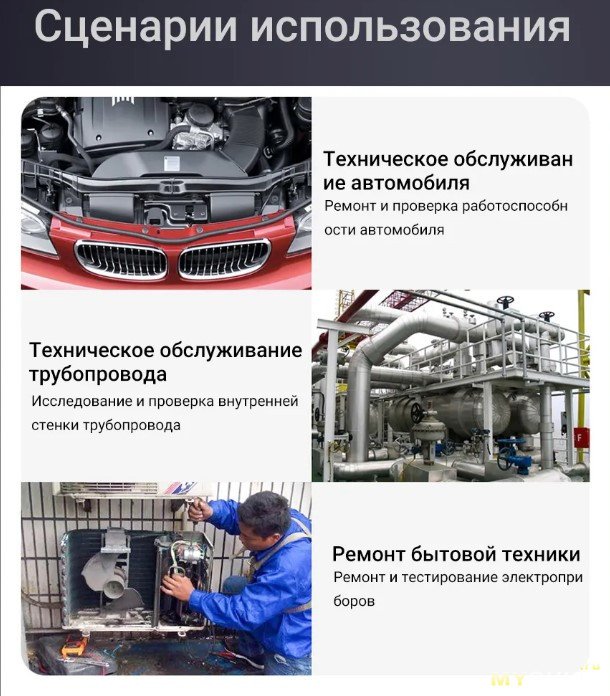 Можно использоваться во многих случаях, когда необходим визуальный техосмотр.
