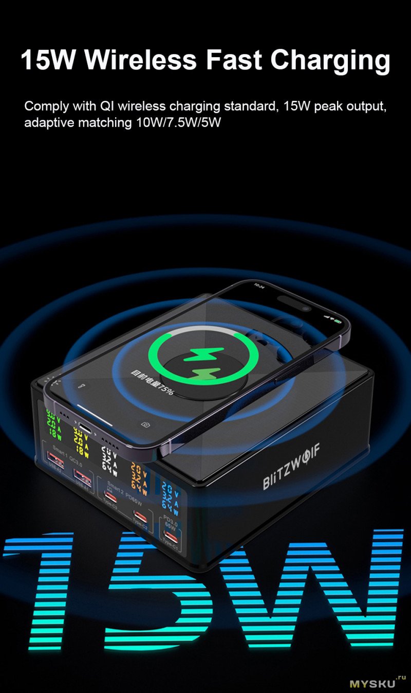 Беспроводная зарядка: 15W/10W/7.5W/5W