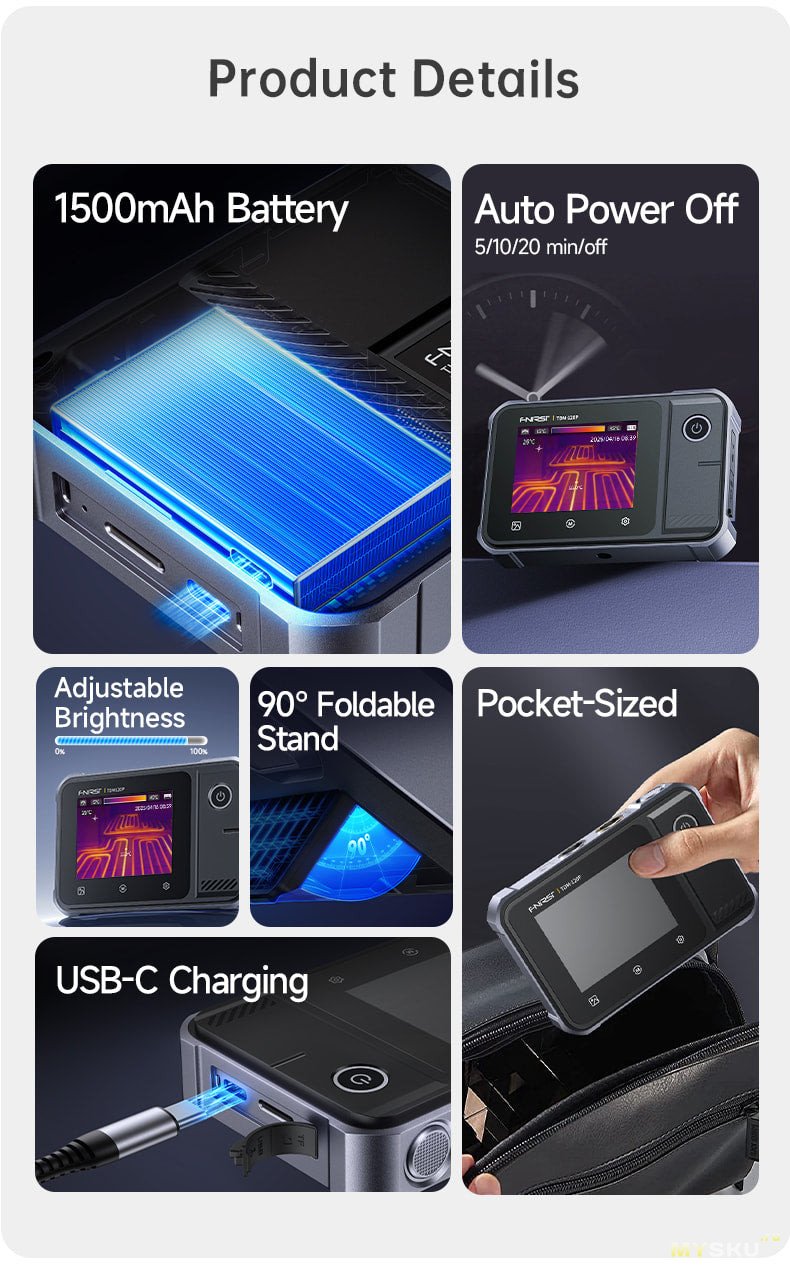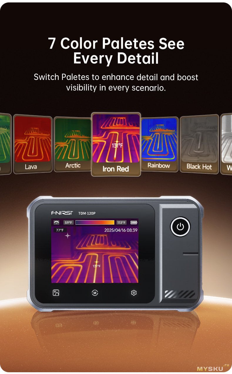 Автономный тепловизор по цене приставки для телефона. Разрешение матрицы 120*90 пикселей, чувствительность <60mK, частота опроса 25Гц. Бонусом в него добавили мультиметр с 19 999 отсчетами. Да, разрешение хотелось бы побольше, но в остальном выглядит привлекательно с учетом стоимости. Модель без мультиметра стоит на 1300 рублей дешевле.
