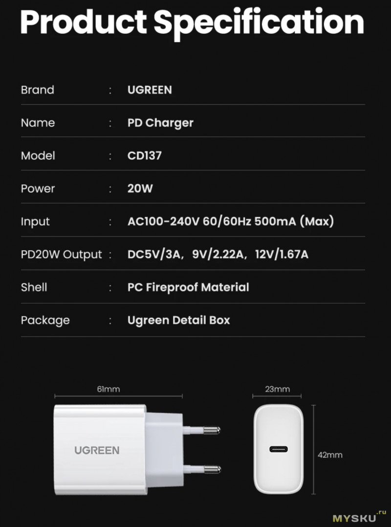 Компактная зарядка Ugreen CD137 PD 20W — идеальное решение, когда не требуется много мощности. В черном и белом корпусе.