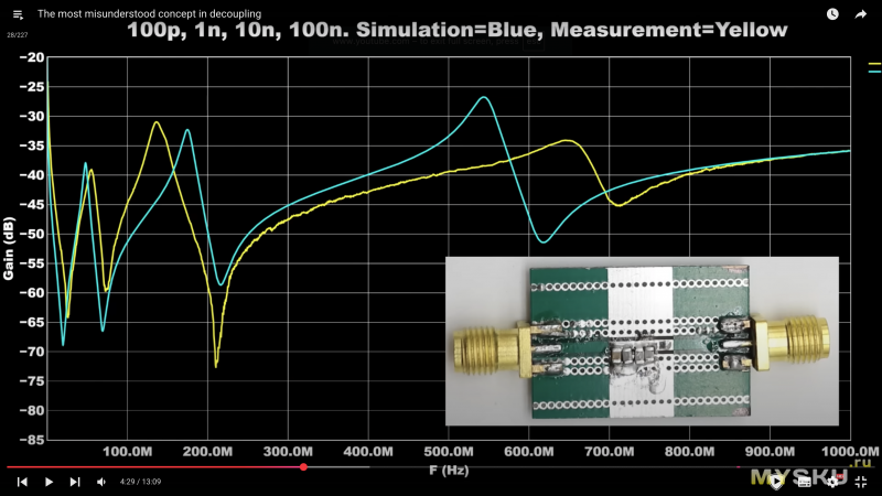 кроме симуляции (которая по данным из даташитов на брендовую murata) есть и реально измеренные параметры этой связки конденсаторов и там есть резонансы и все прочее. вопрос в каком количестве и в каком диапазоне.