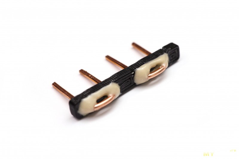 Поскольку печатал всё из легкоплавкого PETG, то, чтобы зафиксировать контакты, использовал термостойкий компаунд, который должен выдержать недолгую пайку: