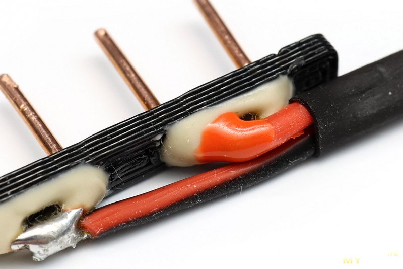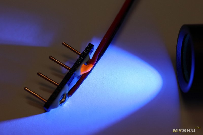 Одну точку пайки, которая будет контактировать с другим проводом, изолировал УФ лаком: