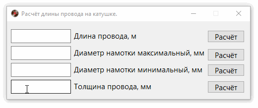 Она позволяет найти любой из нужных параметров по остальным. Т.е. можно идти как от длины провода для хранения, так и от диаметра катушки.