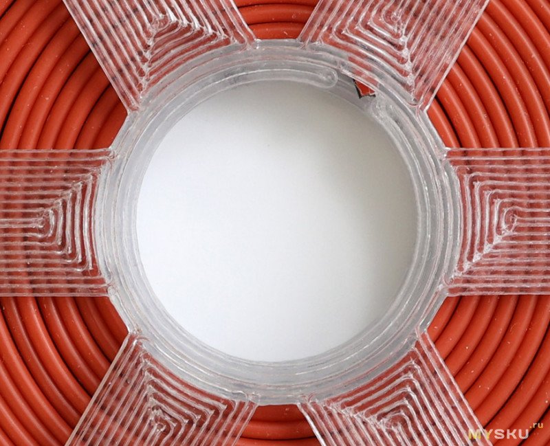 Изначально был соблазн не заморачиваться с ним, а просто пропустить/перекрутить провод по лопастям катушки. Но он бы тогда мялся в этих местах, и бесконечная нирвана была бы разрушена. А с фиксатором весь провод лежит идеально ровно.