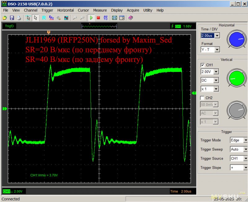 Ну и самое интересное. Скорость нарастания выходного напряжения (ака SR):
