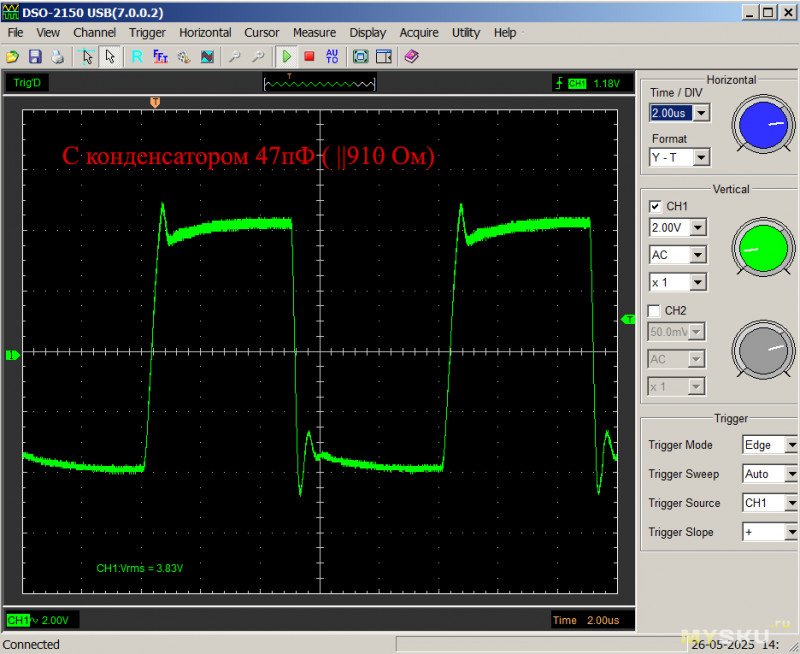 Для улучшения ситуации была установлена ёмкость параллельно R7: