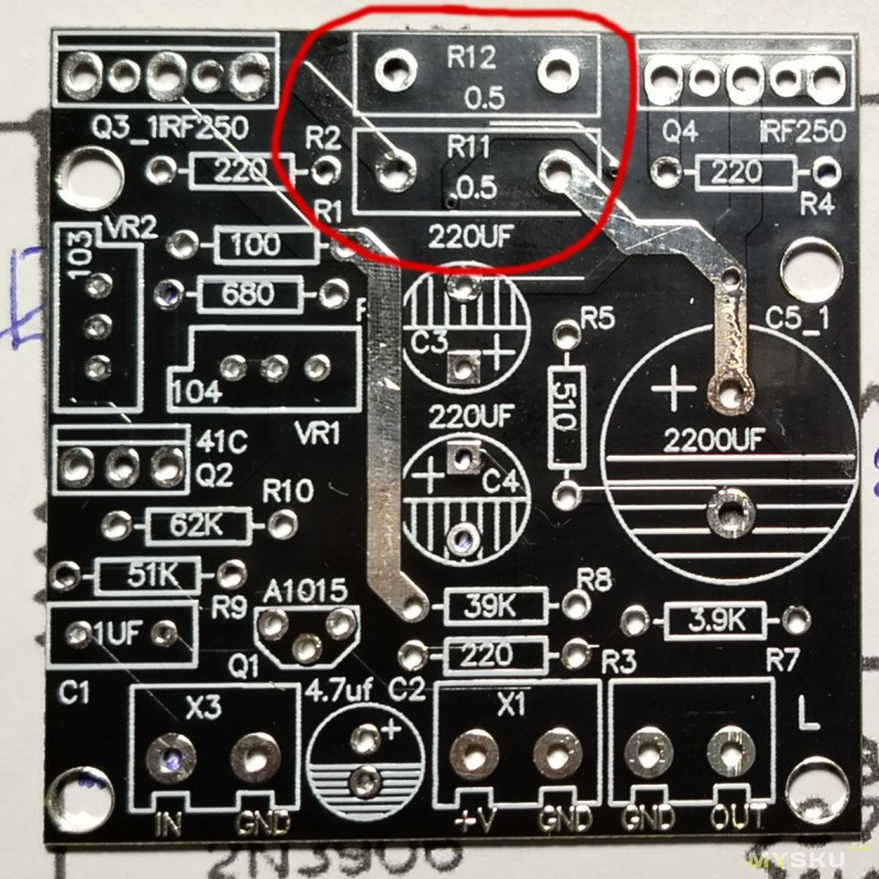 Позже номинал 0,22 Ом был запаян на обеих платах: