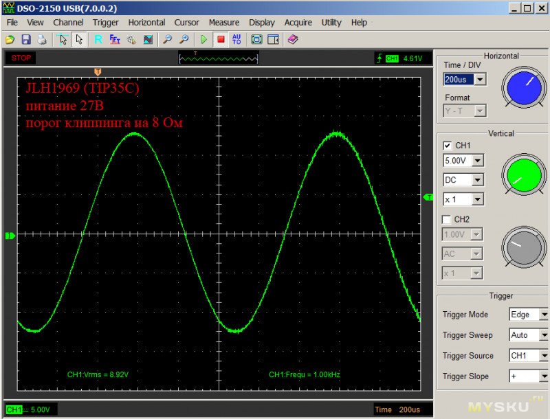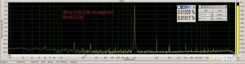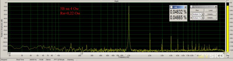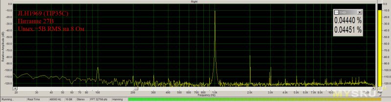 Выброс на переходной характеристике — с генератора.THD при 8 Вт на выходе: