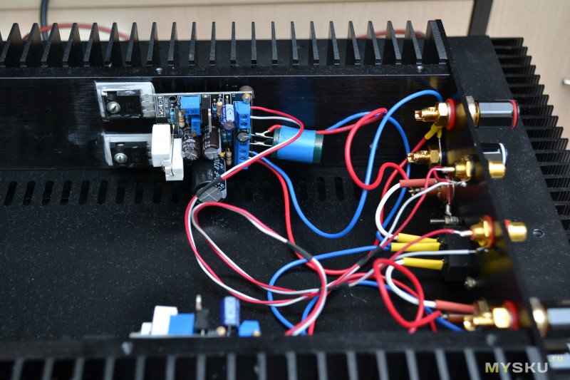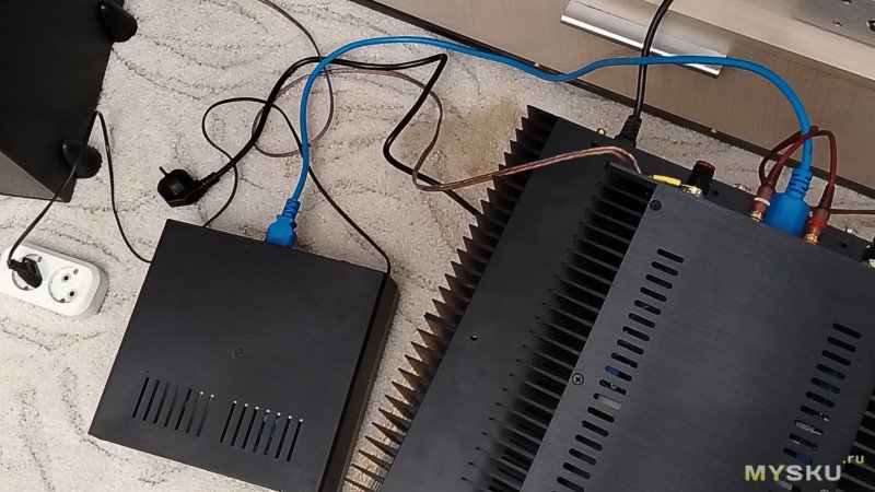 Для соединения корпуса усилителя и блока питания используется компьютерный кабель мама-папа