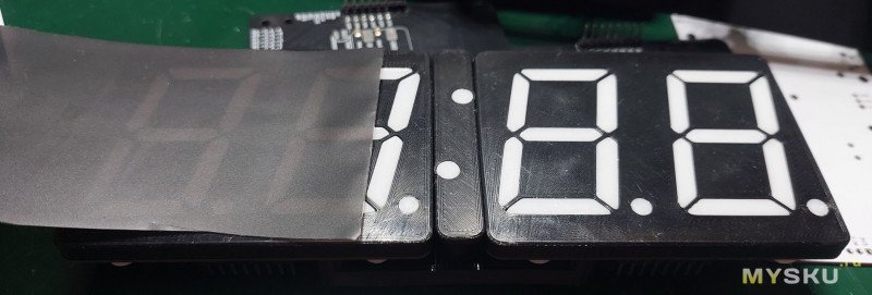 — Главная фишка — автоматическая регулировка яркости высокочастотным ШИМом (нет мерцания). Заложена таблица интенсивности, адаптированная под глаз человека. Цифры стоят как нарисованные и с выключенным светом, и со включенным, немного теряют яркость при прямых солнечных лучах — просто индикаторы не вывозят.