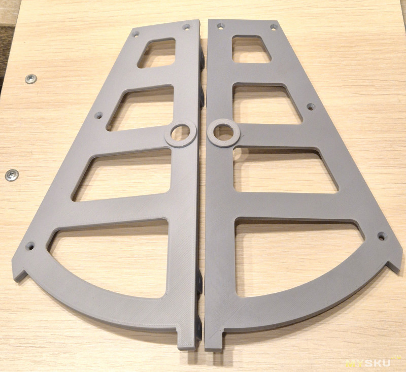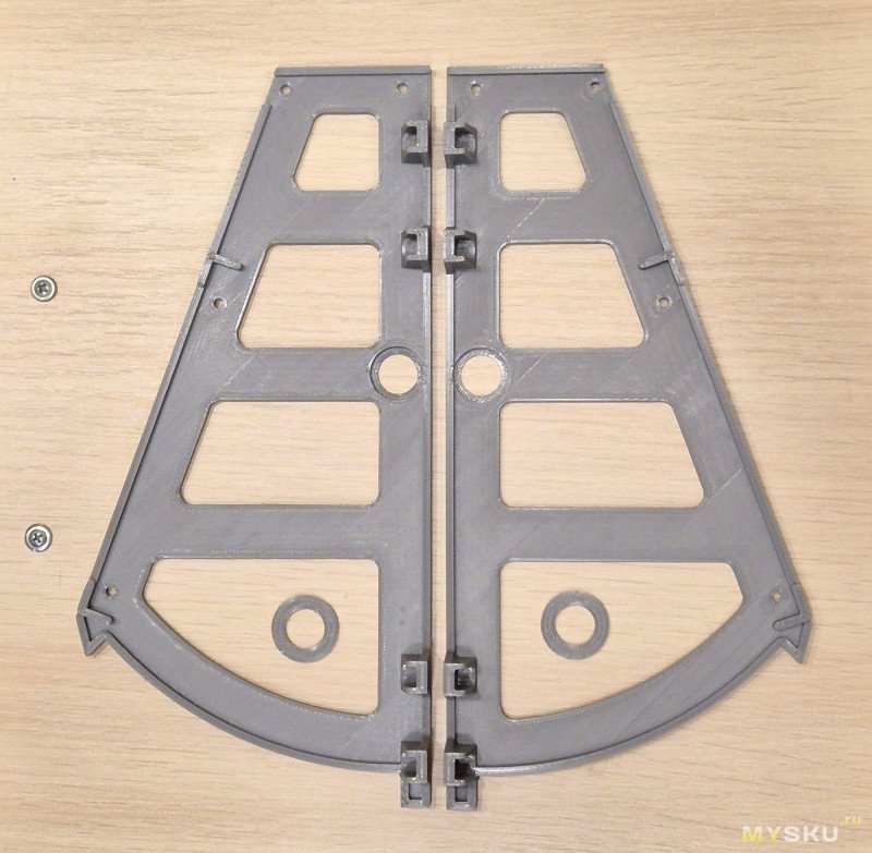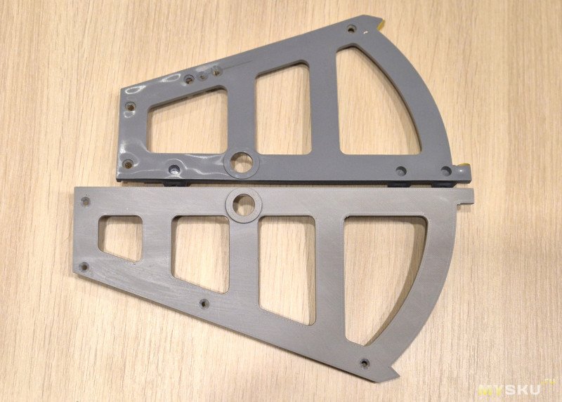 К сожалению, 3D-печать не всесильна, и нормально напечатать можно далеко не любую модель, потому направляющая состоит из двух частей – собственно, направляющей и отдельного поворотного кольца, которое необходимо после печати приклеить на ось вращения. Если у вашего принтера гладкий стол, то для уменьшения трения лучше клеить кольцо нижней (гладкой) стороной наружу. В общем, сначала печатаем: