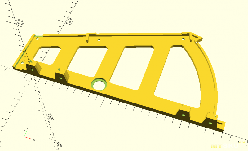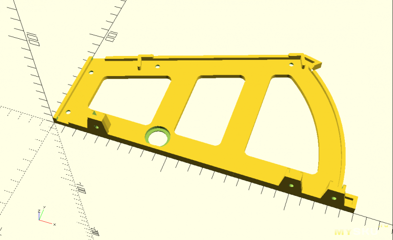 Гурманы наверняка узнают на скриншоте OpenSCAD — да, это именно он. Модель направляющей я сделал несколько лет назад, наверное, почти сразу после покупки своего первого 3D-принтера. В тот момент мне было лениво изучать сложные CAD-системы, поэтому я выбрал для себя более простой и понятный инструмент — OpenSCAD, и всё свое первое 3Д-творчество создавал именно в нем.