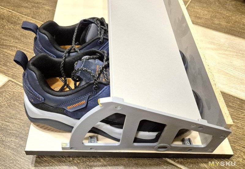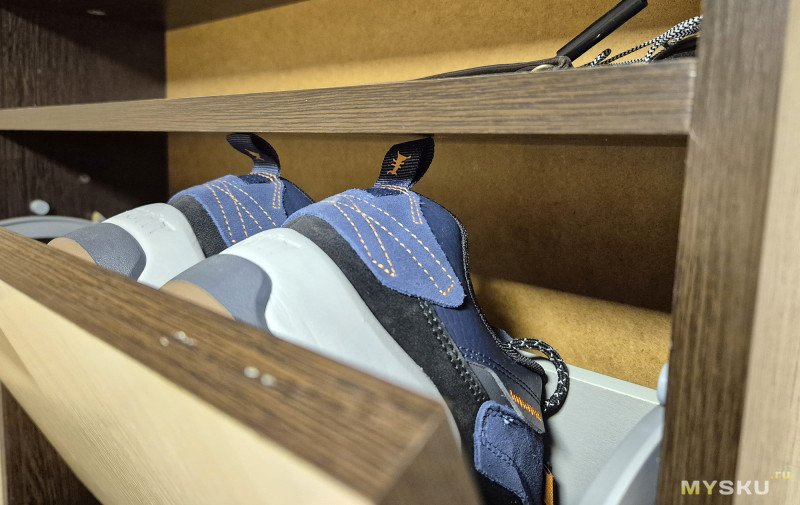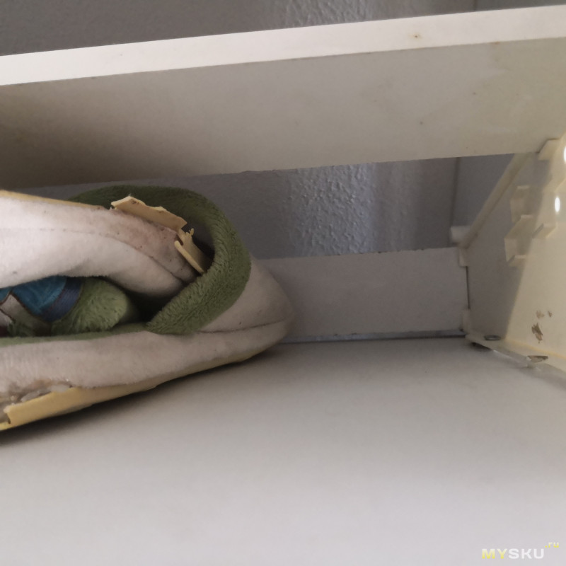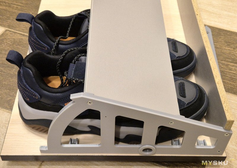 Затем ставим полку на место и убеждаемся, что кроссовки всё так же великолепно помещаются, и даже имеется небольшой запас для более крупных размеров: