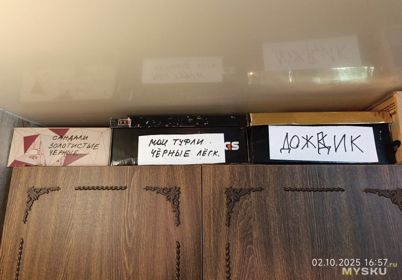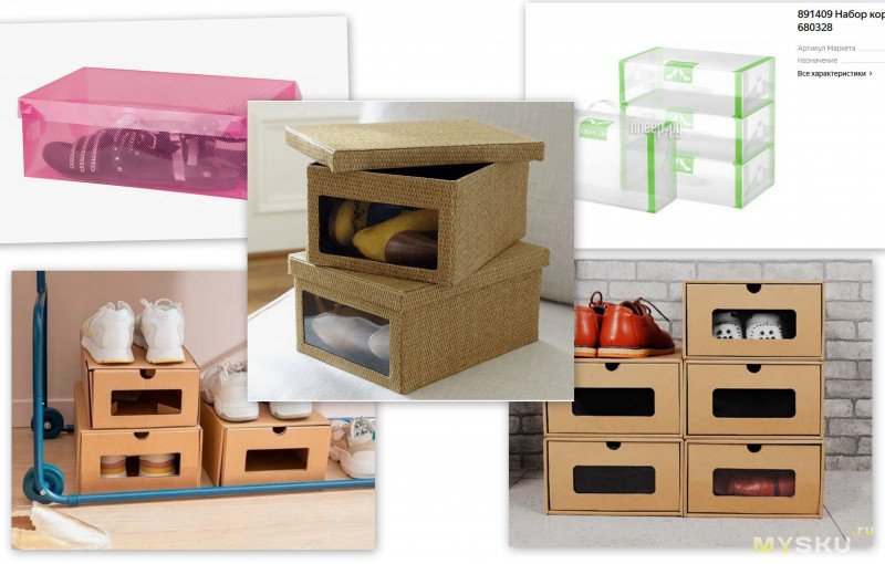 для хранения удобнее шкаф/антресоль и родные коробки от обуви