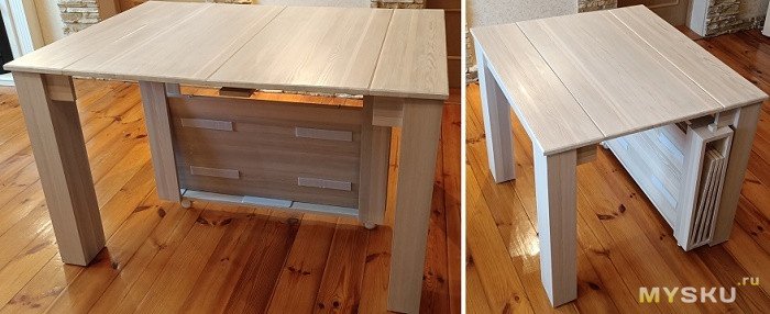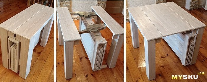 Стол легко передвигается, в собранном состоянии не занимает много места, легко и просто трансформируется.