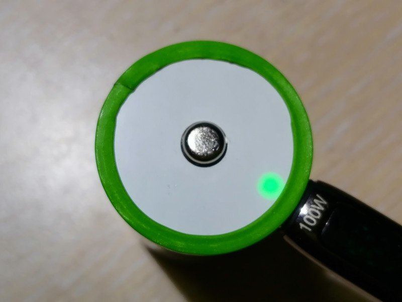 При зарядке рядом с ним мигает индикаторный светодиод, после её окончания загорается ровным светом: