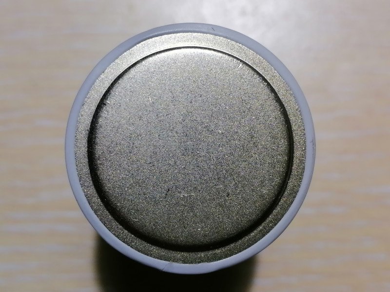 Донце корпуса, оно же минусовой контакт — гладкое, из нержавейки: