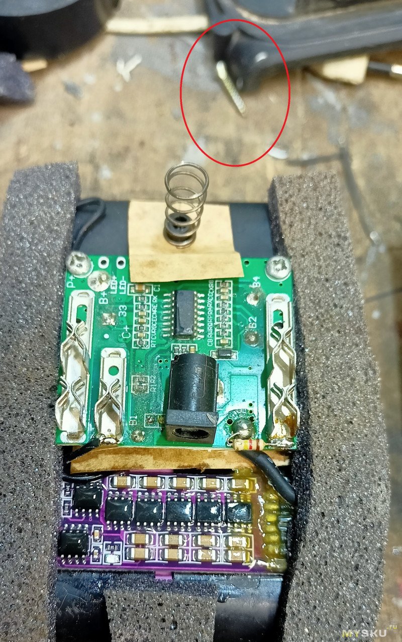 ЗЫ УШМ Deko(может и на других их приблудах, не щупал, это чудо только приносили) если на данном выводе отсутствует потенциал не включается, а просто моргает индикатором скорости. Почистил подогнул пины акб и все, к счастью, заработало.