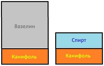 2) Сложная методика приготовления. Сначала надо приготовить насыщенный СКФ (а это долго) и максимально растворить канифоль в вазелине (на водяной бане) и только потом смешивать.