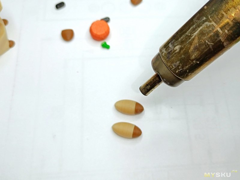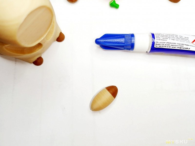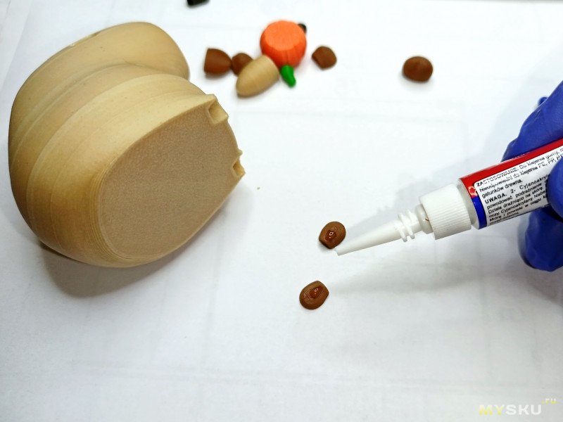 Но самое плохое, что в двух местах от перегрева на пластике вылез «пузырь». Я придавил пузыри пальцем после повторного прогрева, но дефект все равно был заметен, хоть и не так явно. Со второй фигуркой капибары я уже фен не использовал и склеил модель за 15 минут без всяких проблем. Клей – цианоакрилат. Рекомендую использовать гель, а не жидкий клей.