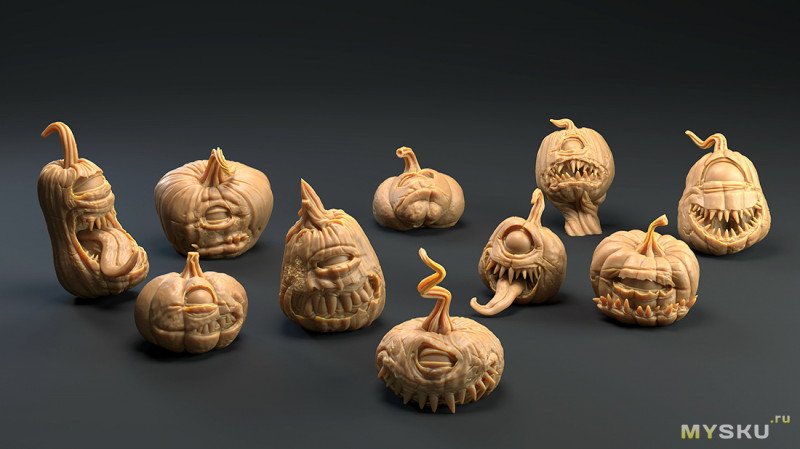 Итак, решил обратиться к знакомому, который профессионально занимается 3D-печатью. Нашел вот такой набор «злобных тыквочек» и принес ему на флешке STL файл.