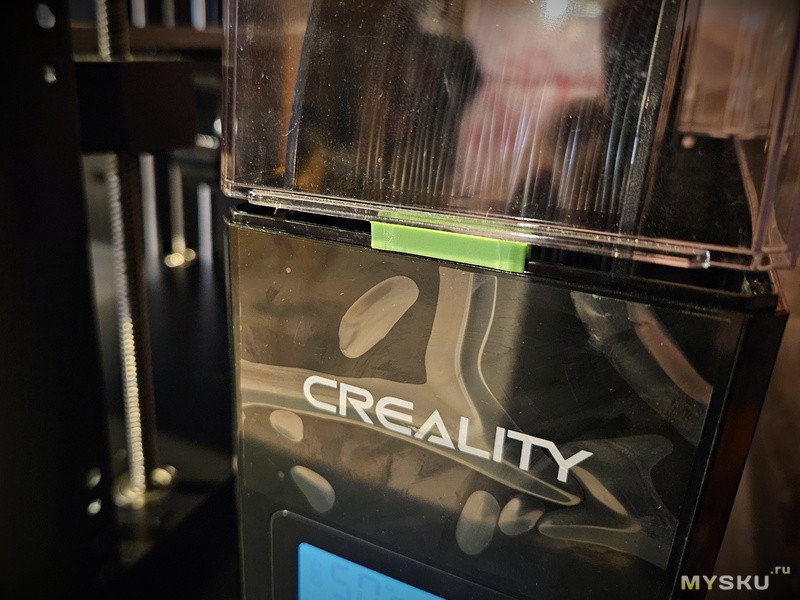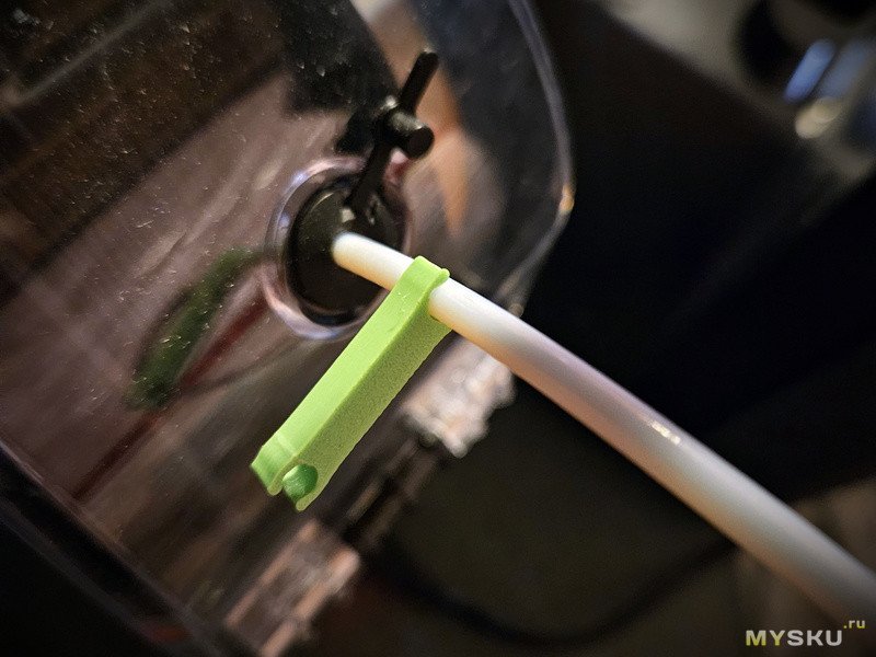 Прелесть моего решения в его простоте и компактности: деталь крошечная, печатается меньше чем за пять минут, не занимает лишнего места и никогда не потеряется, потому что защёлкивается прямо на трубку подачи филамента.