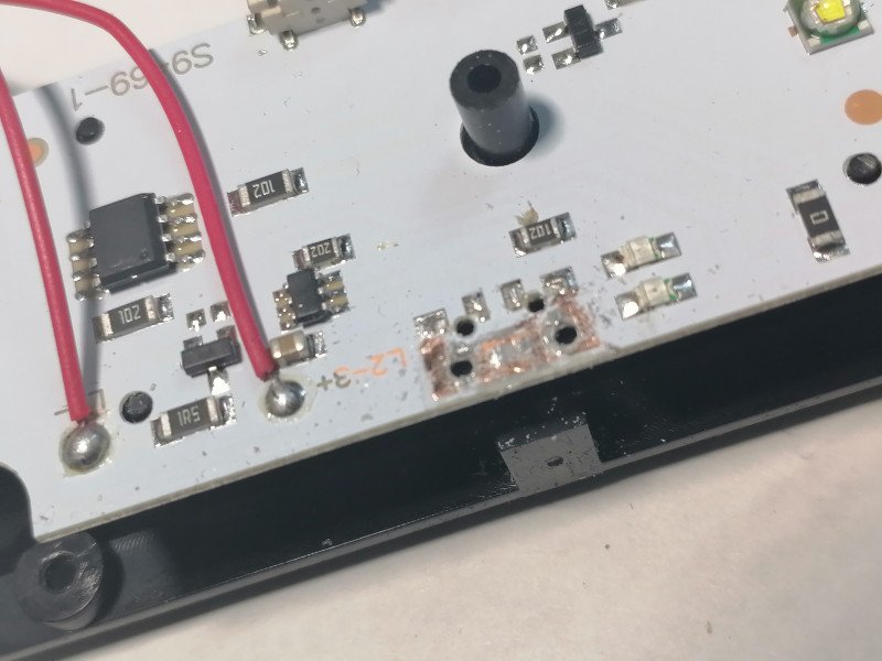 Припаиваем обратно контакты аккумулятора. Убеждаемся, что всё работает: