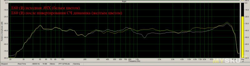 Аналогичная картина и для полярности ВЧ динамика (твитера) по отношению к СЧ динамику.