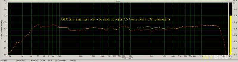 АЧХ СЧ динамика без фильтра и с родным фильтром: