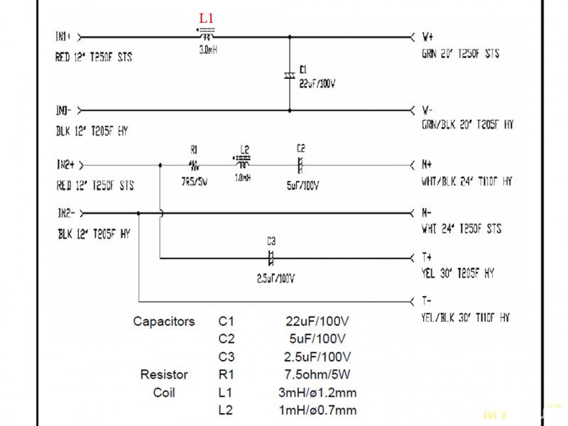 Примечание: HT25 включена с родным «фильтром» E60, т.е. через конденсатор 2,5мкФ (см. схему выше).