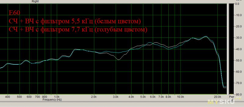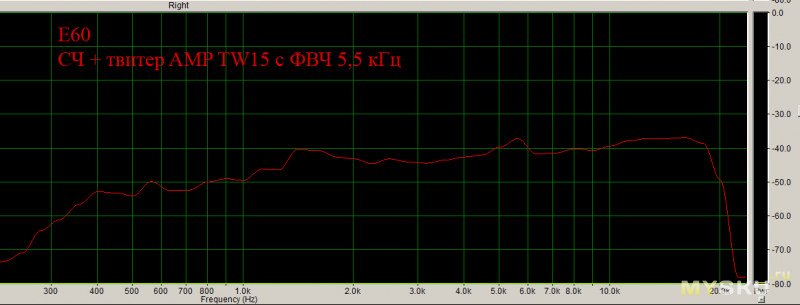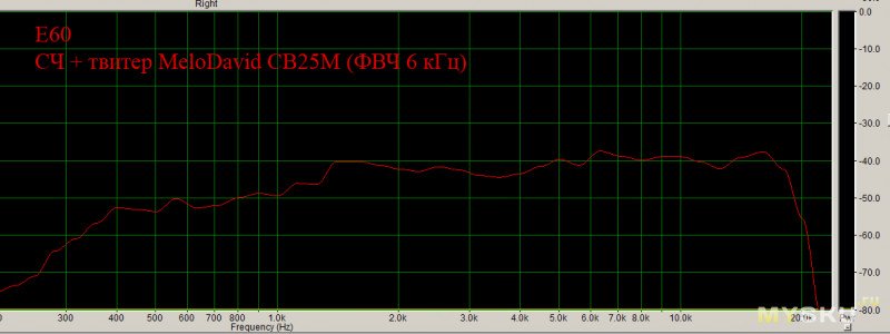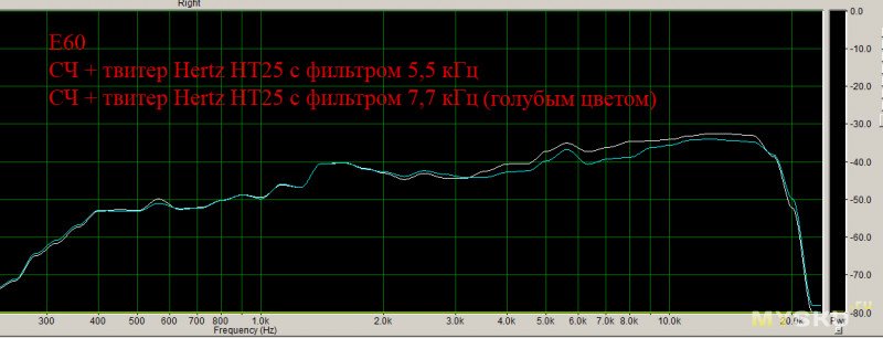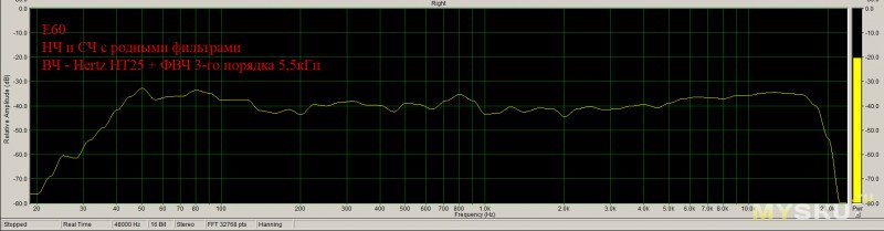 Примечание: HT25 включена с родным «фильтром» E60, т.е. через конденсатор 2,5мкФ (см. схему выше).Результат:
