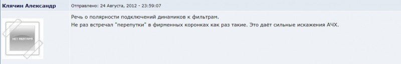 Т.о. СЧ динамик по факту включен в обратной полярности.
