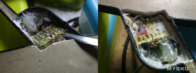 Освобождаю кабель от заливки и удаляю его.