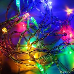 Именно такой гирляндой украшаю «мини-ёлку». Гирлянда достаточно удобная, ее легко вешать. Она трехметровая, проводники мягкие, в прозрачной оболочке, светодиоды выводные и закрыты пластиком. Светодиоды — красного, желтого, зеленого и синего цвета.