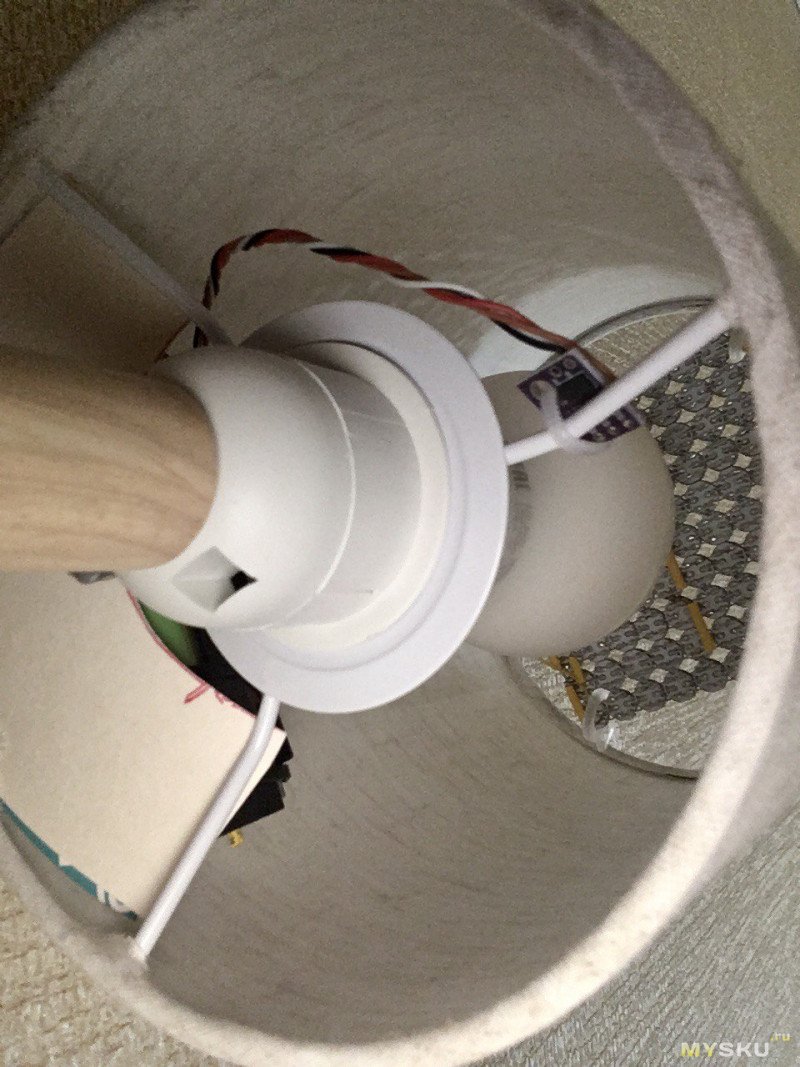 Далее следуют фотки готового будильника. 100 светодиодов держатся на прозрачных крючках от штор. Провод USB я проложил там же где провод светильника.