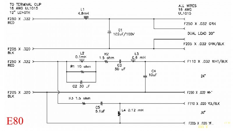 Теперь сморим схему JBL E80: