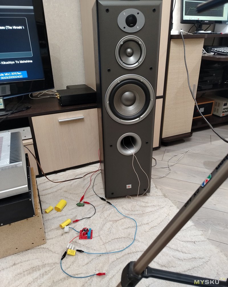 Я пошёл на нечестный приём: поигрался резисторами параллельно НЧ динамику.