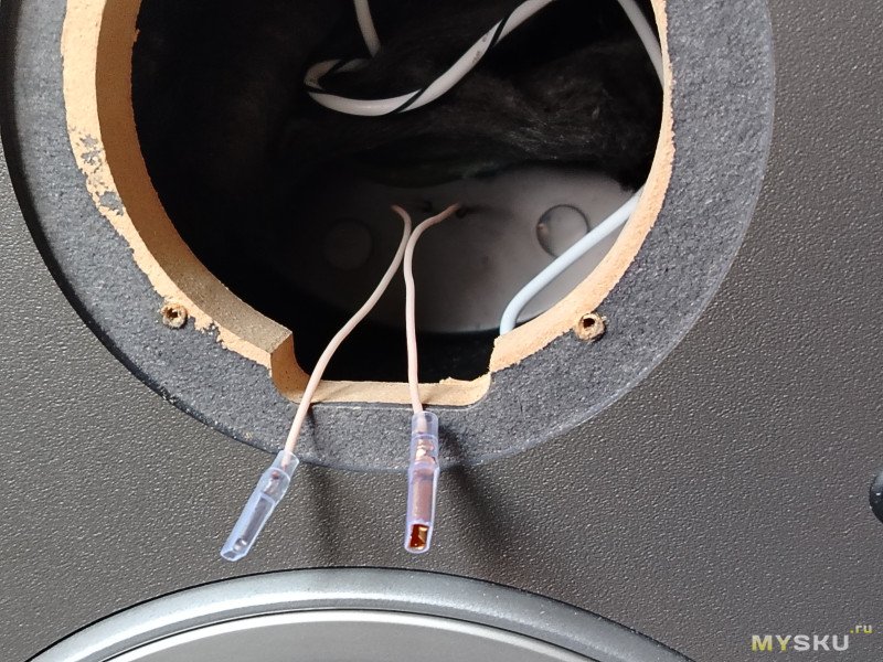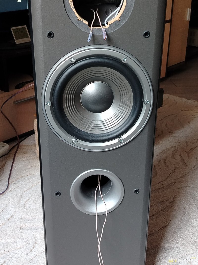 В этот раз — в родном акустическом оформлении.Для этого пришлось проковырять два отверстия в стакане СЧ динамика: