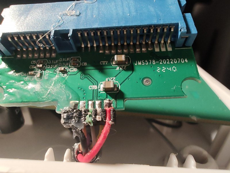 У меня, например, тот же и другой SATA-мост не хотел запускаться на usb3 когда я его просто подпаял к контактам USB-A разъема на плате роутера (при том что в него ничего не было воткнуто)