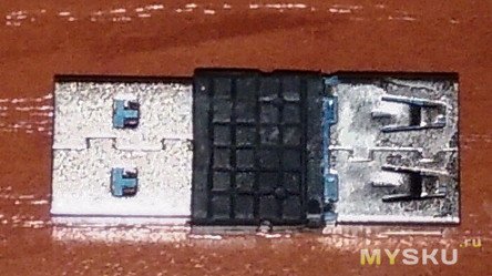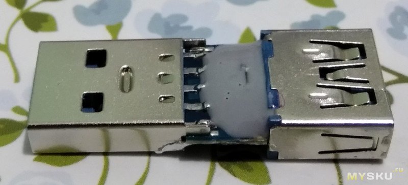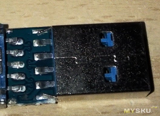 Нам нужно прозвонить контакты GND, VCC, D+ и D-. Контакты D+ и D- отпаять от платы. Я еще положил полоску каптонового скотча под них, что бы случайно потом в процессе сборки не было опять контакта.