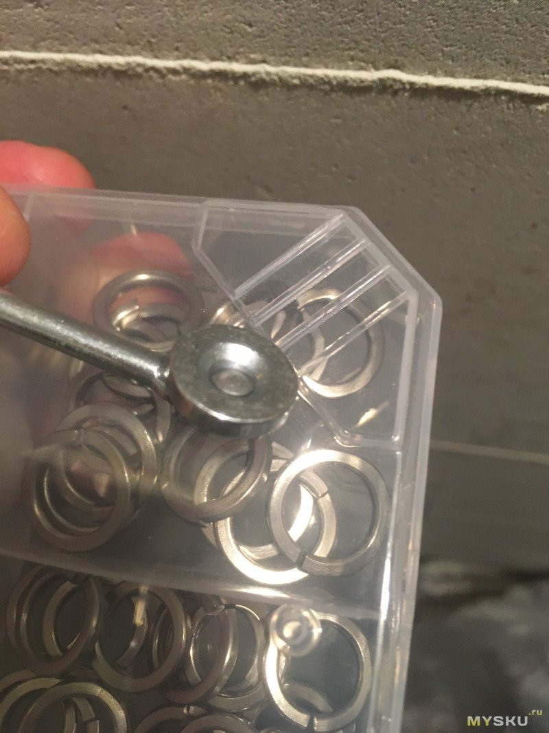Они уже облуженные и будто бы из латуни (внутри под верхним слоем действительно какой-то желтоватый сплав, немагнитный). В ход пошел самый маленький размер, отверстие кольца 3мм в диаметре.