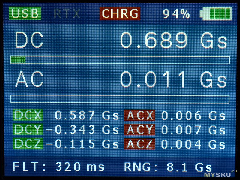 Вместе с аккумуляторным питанием появляются дополнительные проблемы: аккумулятор надо как-то заряжать, надо следить за уровнем его заряда, надо как-то выключать питание, гарантируя низкий ток утечки. А также надо как-то получить нужное напряжение питания схемы. Датчик магнитометра, дисплей и процессор требуют напряжения питания 3.3 В. Напряжение заряженного аккумулятора может быть до 4.2 В, а в процессе разрядки оно снижается, и при 3.3 В остается сравнительно малый процент заряда. Поэтому напряжение можно только понижать. Применять здесь импульсный стабилизатор не имеет смысла, потому что разность входного и выходного напряжений очень небольшая. Если принять напряжение аккумулятора в середине цикла разрядки за 3.85 В, то КПД линейного стабилизатора составит 85%, что соизмеримо с импульсным. В качестве стабилизатора решил использовать микросхему RT9193-33GB, которая была под рукой.